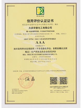 大慶華營化工有限公司成立于2006年7月10日,注冊資金3300萬元,公司類型為有限責(zé)任公司。位于大慶高新技術(shù)產(chǎn)業(yè)開發(fā)區(qū)宏偉園區(qū),是一家集油田助劑產(chǎn)品的研發(fā)、生產(chǎn)、銷售和技術(shù)服務(wù)為一體的現(xiàn)代化高新技術(shù)企業(yè)。公司注重科技創(chuàng)新,公司擁有18項(xiàng)自主知識(shí)產(chǎn)權(quán)。企業(yè)承擔(dān)過國家火炬計(jì)劃重點(diǎn)項(xiàng)目、國家科技型中小企業(yè)創(chuàng)新項(xiàng)目等,2011年被科技部火炬高新技術(shù)產(chǎn)業(yè)開發(fā)中心評(píng)為國家火炬計(jì)劃重點(diǎn)高新技術(shù)企業(yè)。公司十余種產(chǎn)品獲得中國石油天然氣集團(tuán)公司產(chǎn)品質(zhì)量認(rèn)可證書,其中粘穩(wěn)型驅(qū)油劑獲國家火炬計(jì)劃重點(diǎn)項(xiàng)目證書。公司憑借多年對(duì)大慶油田及周邊油田地質(zhì)情況的研究,可針對(duì)各油田地層特點(diǎn)調(diào)整產(chǎn)品的配方,更好地發(fā)揮各類油田助劑的性能。